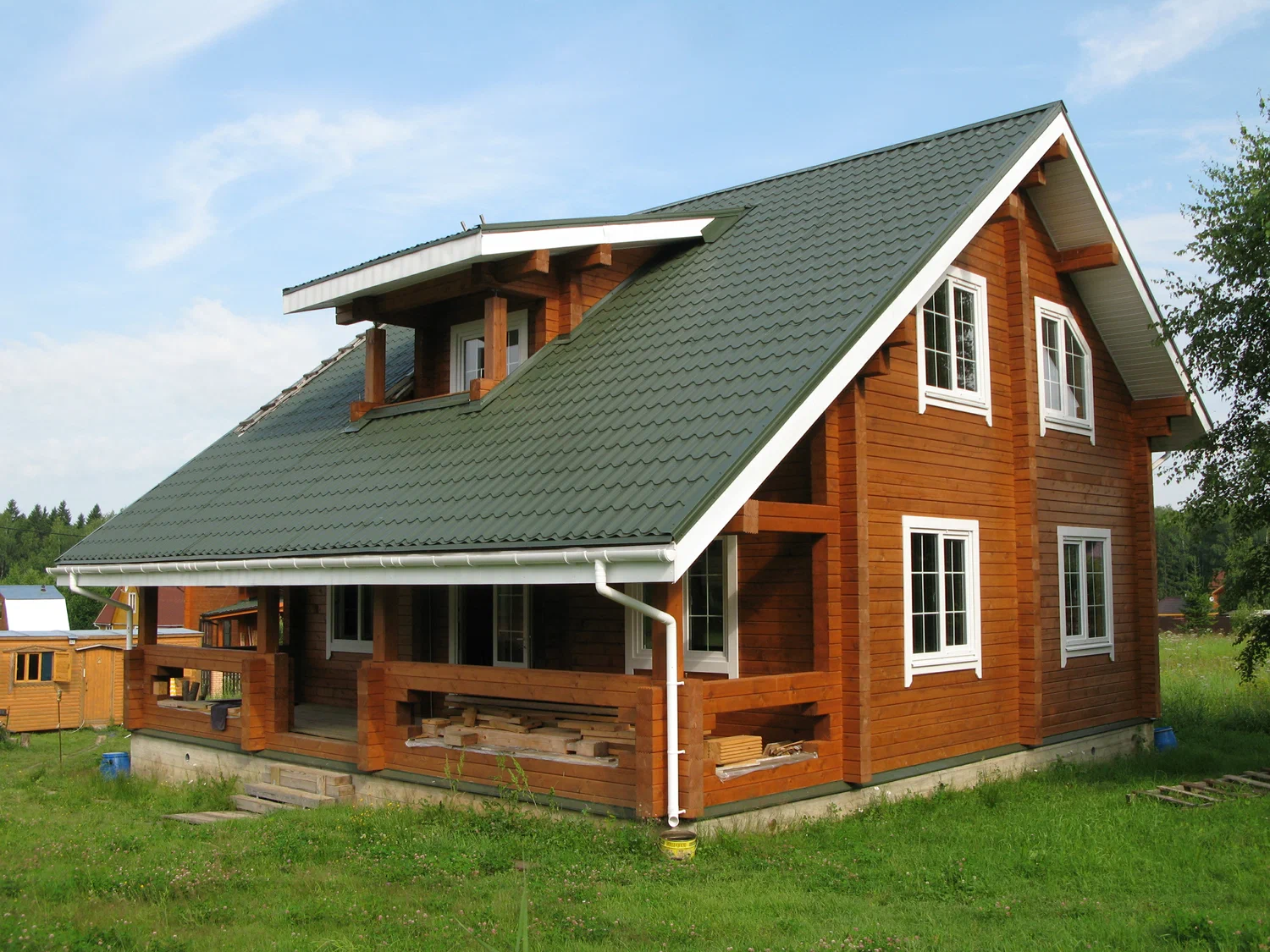 Строительство домов из клееного бруса и выбор металлочерепицы для кровли